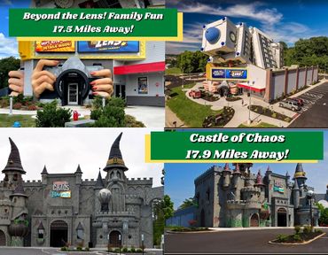 Just down the road, beautiful Pigeon Forge offers attractions of all kinds––from the iconic Dollywood to the NASCAR Speedpark, Smoky Mountain ziplining to alpine coasters. Whatever your style, this quaint town has something for you!